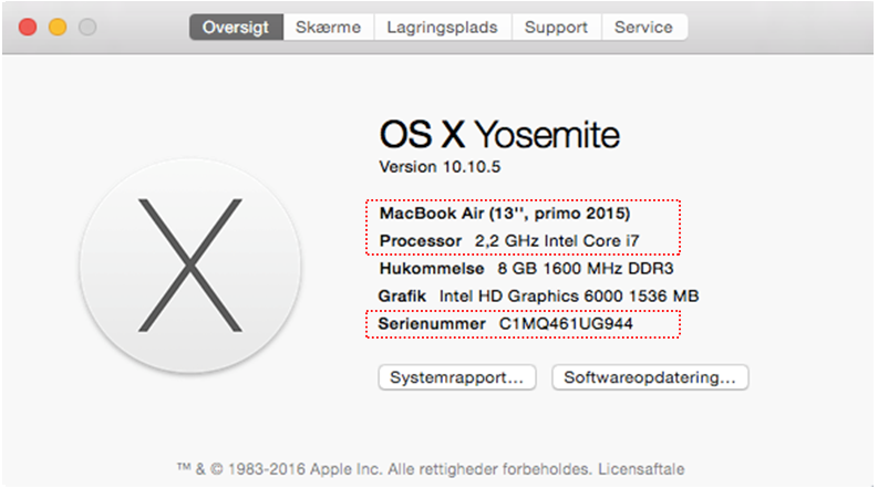 Pour trouver des informations produit détaillées sous OS X: